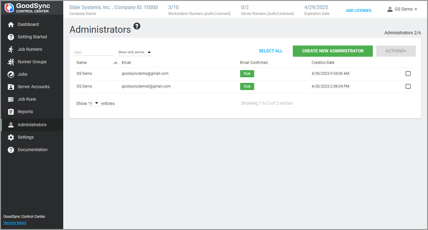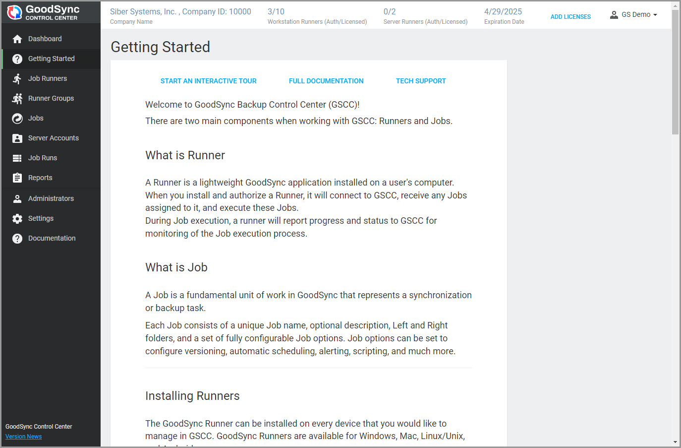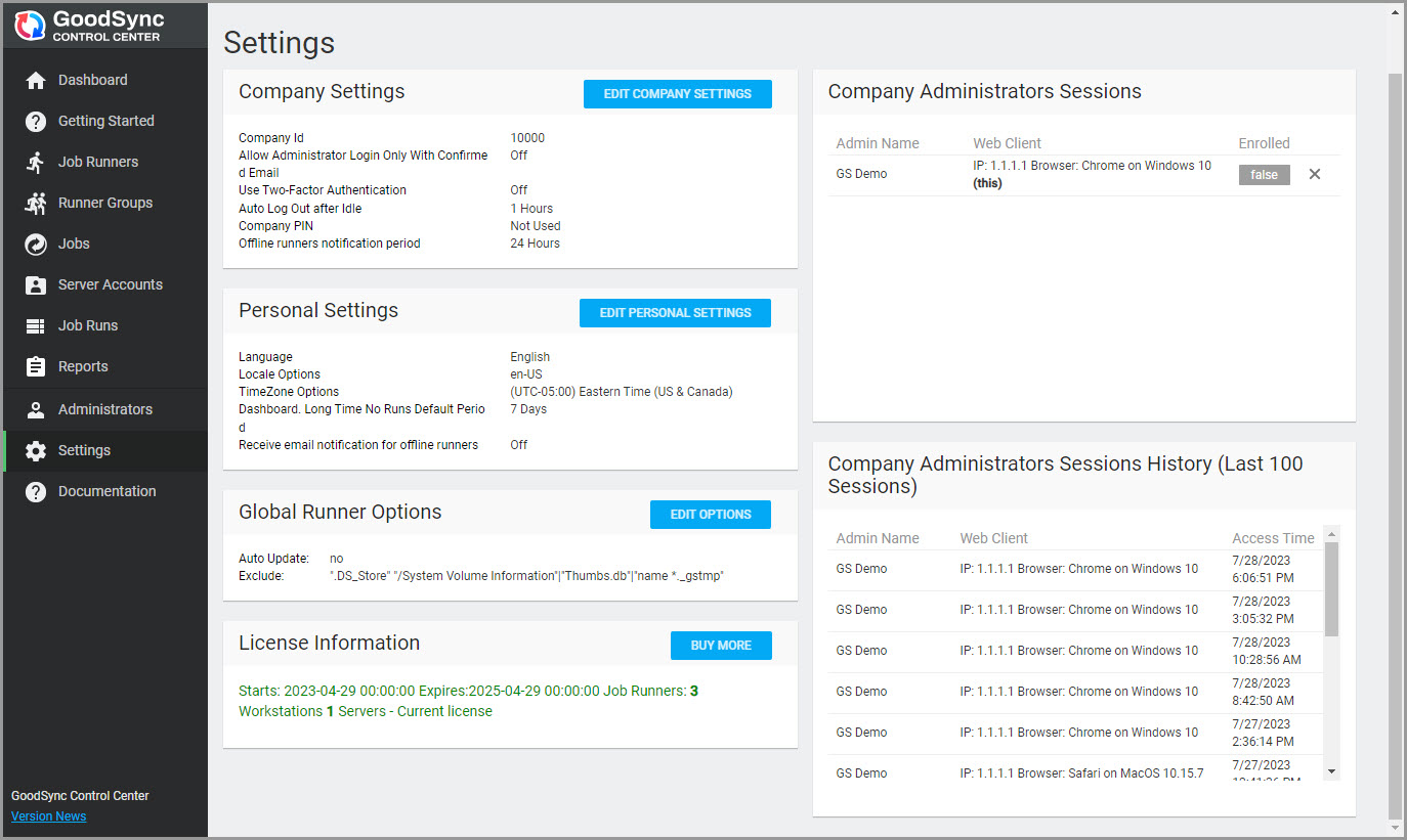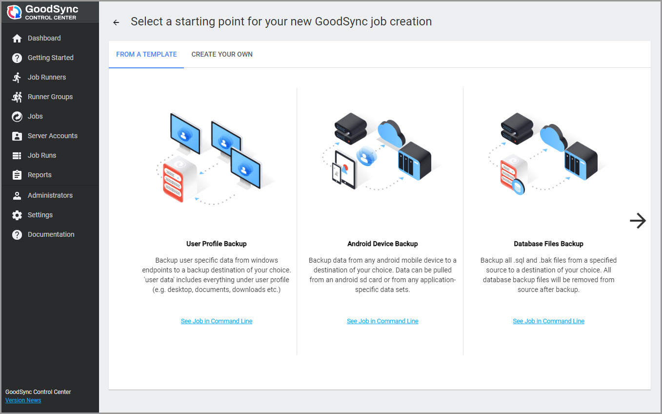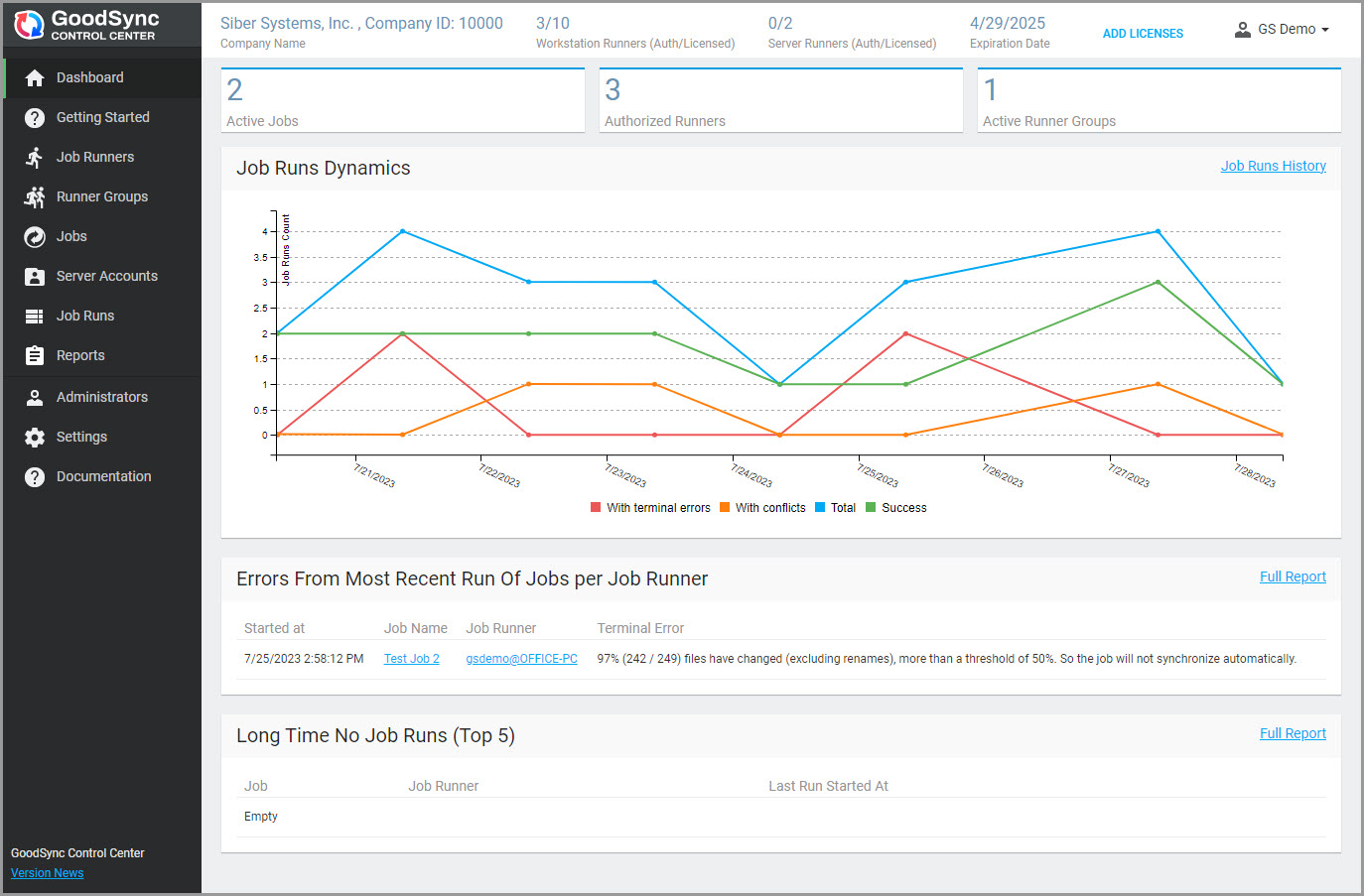 The GoodSync Control Center is an online service designed to enable companies to create and oversee jobs for runners installed on client devices. All company management tasks are performed online and are seamlessly integrated with GoodSync Workstation and Server installations.