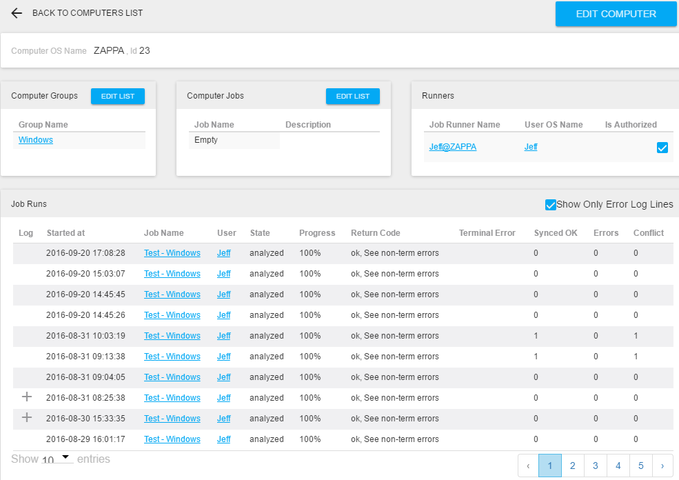 - Job Runs show list of all Runs of all Jobs on all Runners, so it is a history of what Runners did on all your Computers, with detailed logs.