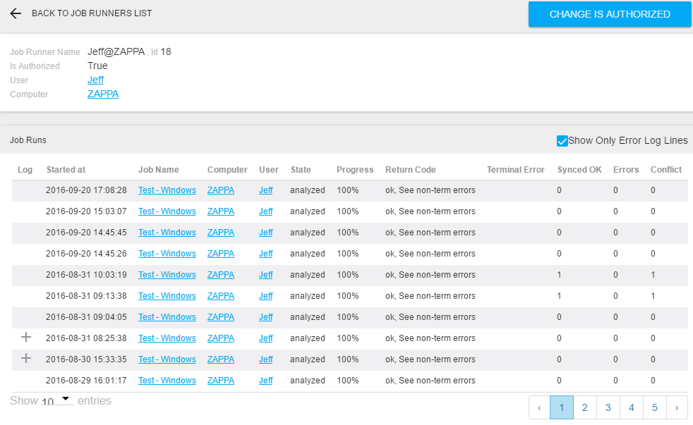 - Job Runners are a combination of a specific OS User on a specific Computer. So for Windows example of runner is 'John Smith@AccountingServer' where 'John Smith' is Windows user and 'Accounting Server' is a Windows machine. Runners are approved (authorized) by the Administrator before Jobs are sent to them.