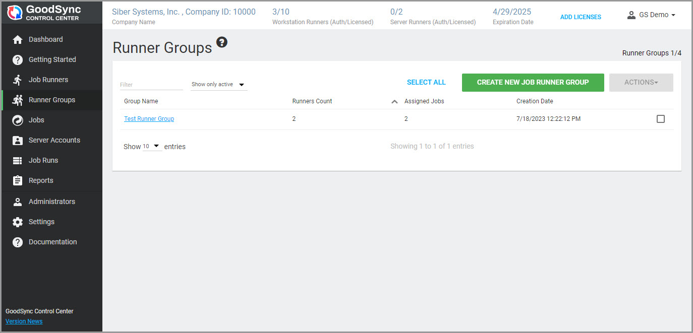 - Once setup is complete, navigate to the "Job Runners" section in the Control Center. There, the installed Runner will appear within the Runner List.