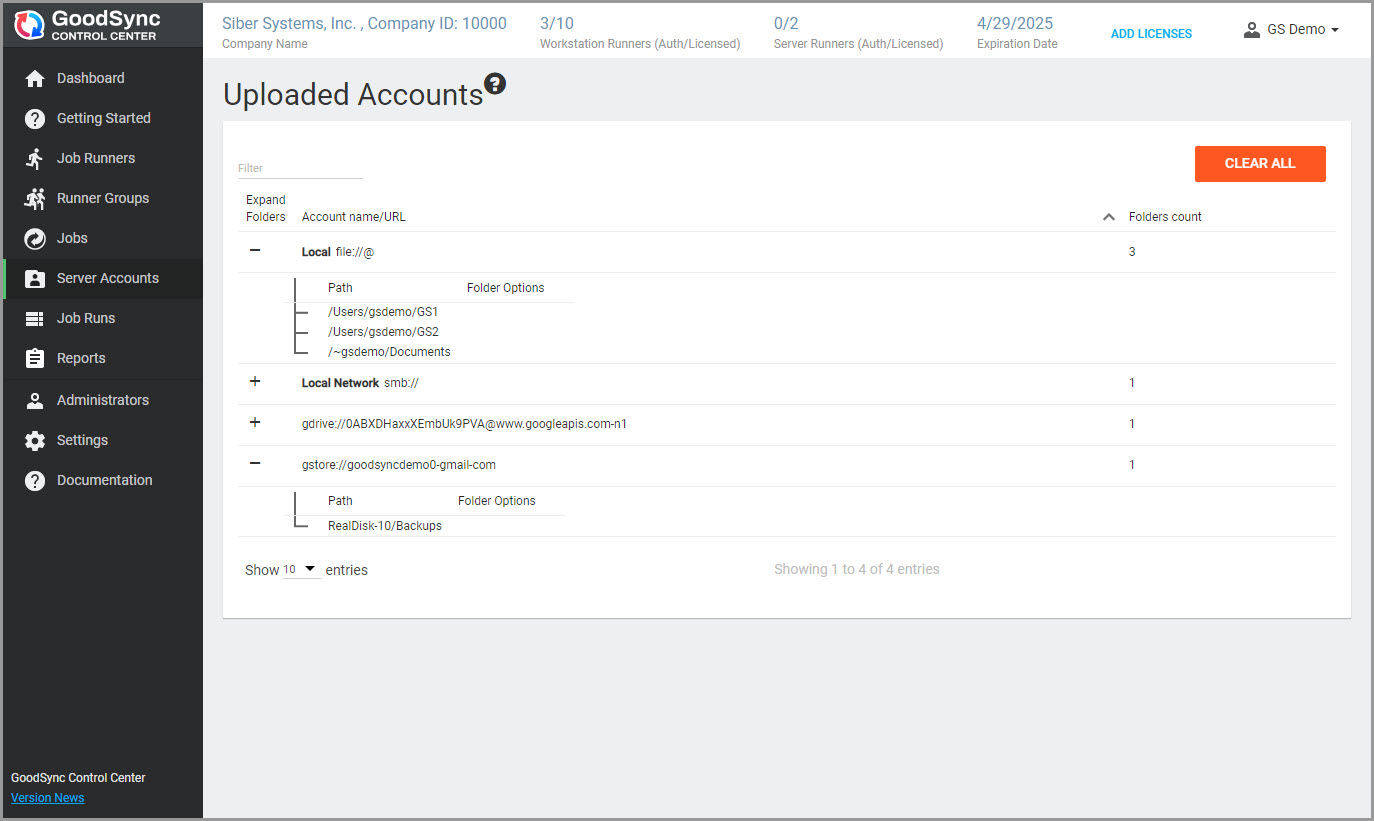 - Server Accounts lists all Server Accounts available for Jobs within the Control Center. Server Account constitute a Password Manager of sorts, used by Jobs. So if server credentials change in one Job, this change is automatically visible to another Job, because they refer to the same Server Account. Server Account are taken from GoodSync GUI client which is assigned to the same GoodSync Account as Company here in Control Center.