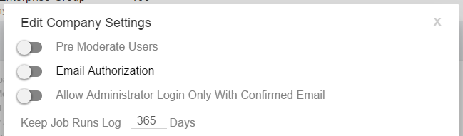 Company PIN – PIN used to whitelist incoming runners (optional).