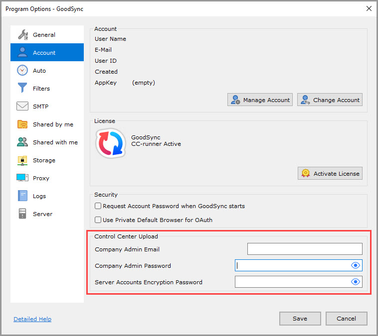 - GoodSync Account may be assigned to Control Center Company, starting with CC ver 3.1.1. Then all Jobs and Server Accounts are taken from this GoodSync Account and there is no need in manual Job creation in Control Center.