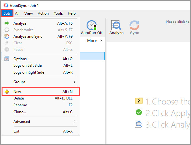 There are a variety of automatic settings you can choose from. You only need to set up your synchronization Job once and GoodSync will automatically synchronize your files according to your preferred schedule/settings.